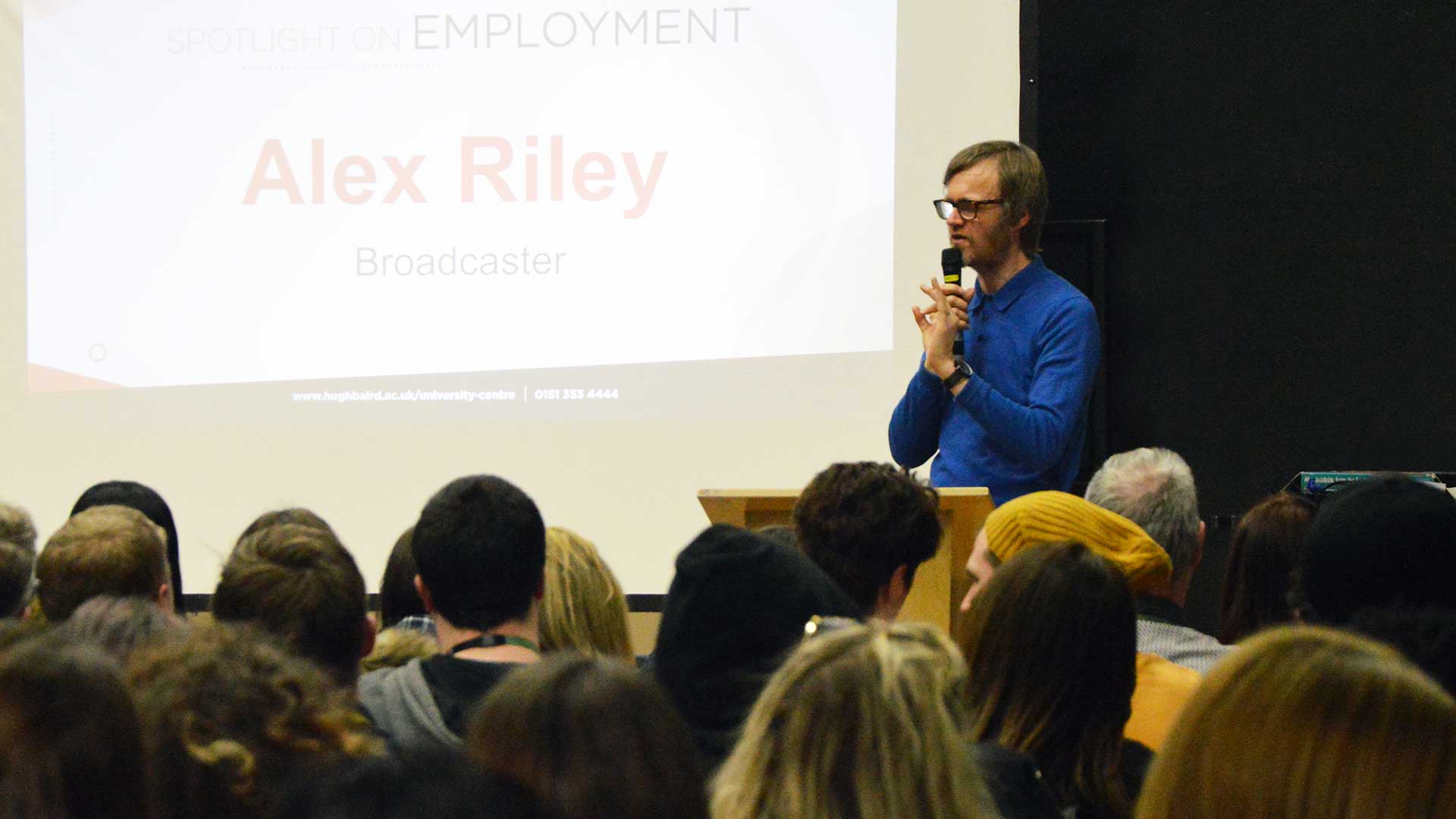 Hugh Baird College students recently enjoyed hearing about the career journey of BBC presenter, documentary maker and broadcaster Alex Riley.