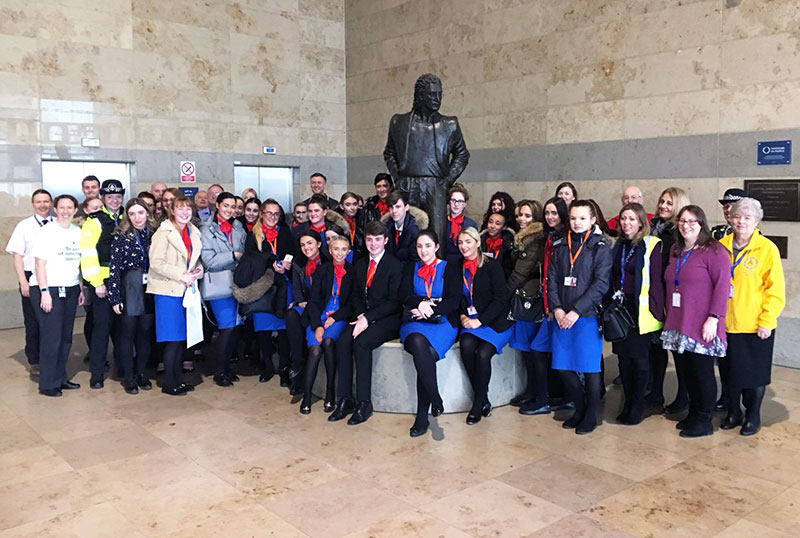 Travel, Cabin Crew and Aviation students taking part in a large-scale live training exercise at Liverpool John Lennon Airport.